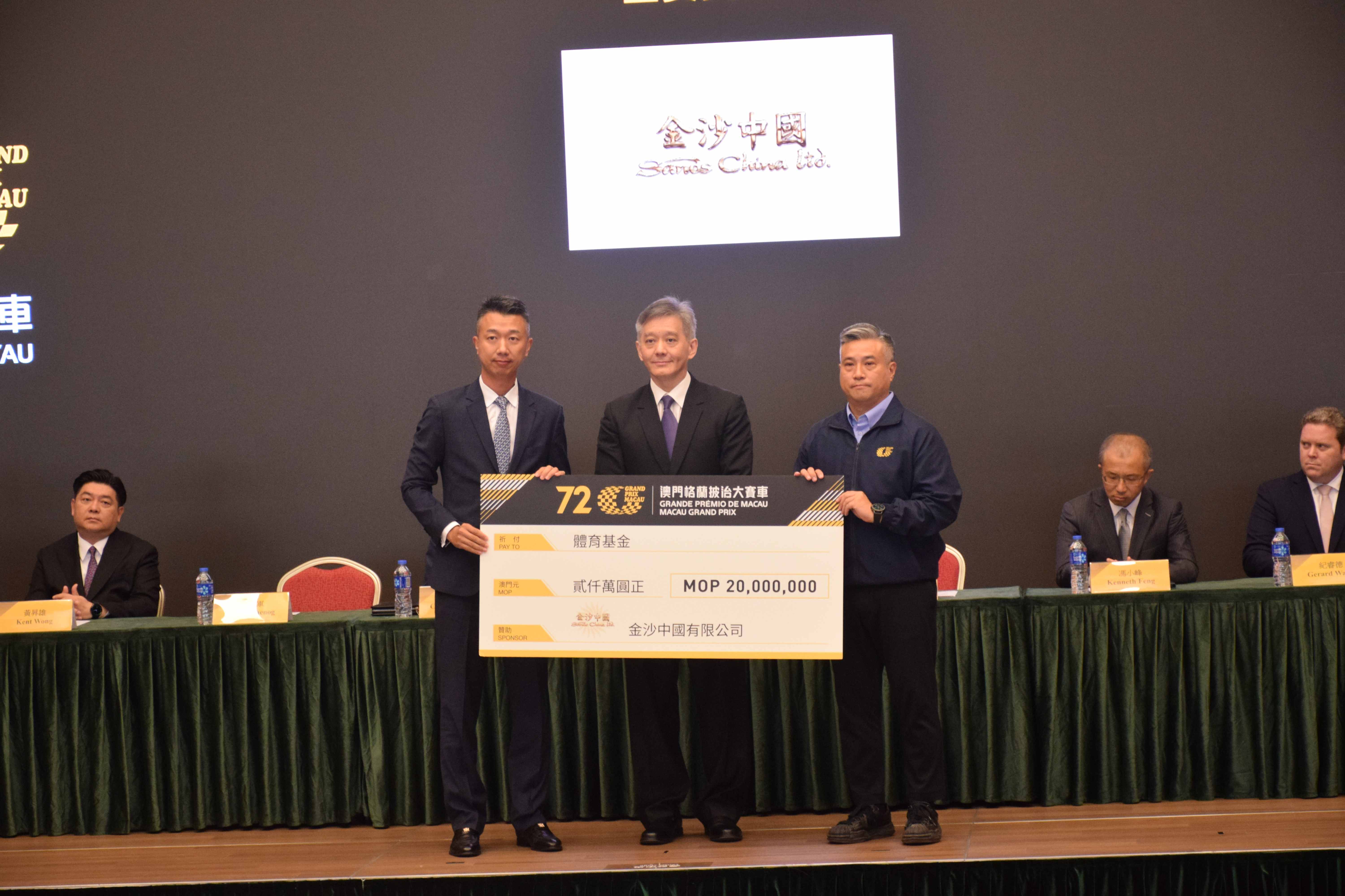 大赛车提供平台予本地企业加大非博彩元素的投入,利用相关企业的资源和优势,为本届赛事带来更多的周边元素及不同的宣传渠道。本澳六家综合度假休闲企业以主要赞助商身份对「第72届澳门格兰披治大赛车」作出支持,包括:金沙中国有限公司、美高梅中国控股有限公司、新濠博亚娱乐有限公司、澳娱综合度假股份有限公司、银河娱乐集团及永利渡假村(澳门)股份有限公司,每家企业赞助金额为澳门元贰仟万圆正。大赛车组委会希望持续以体育盛事作为平台,与业界共同做好吸引国际客源的体育旅游项目,切实推进综合旅游休闲产业与体育产业的协同发展。新闻发布会上进行了主要赞助商支票递交仪式。