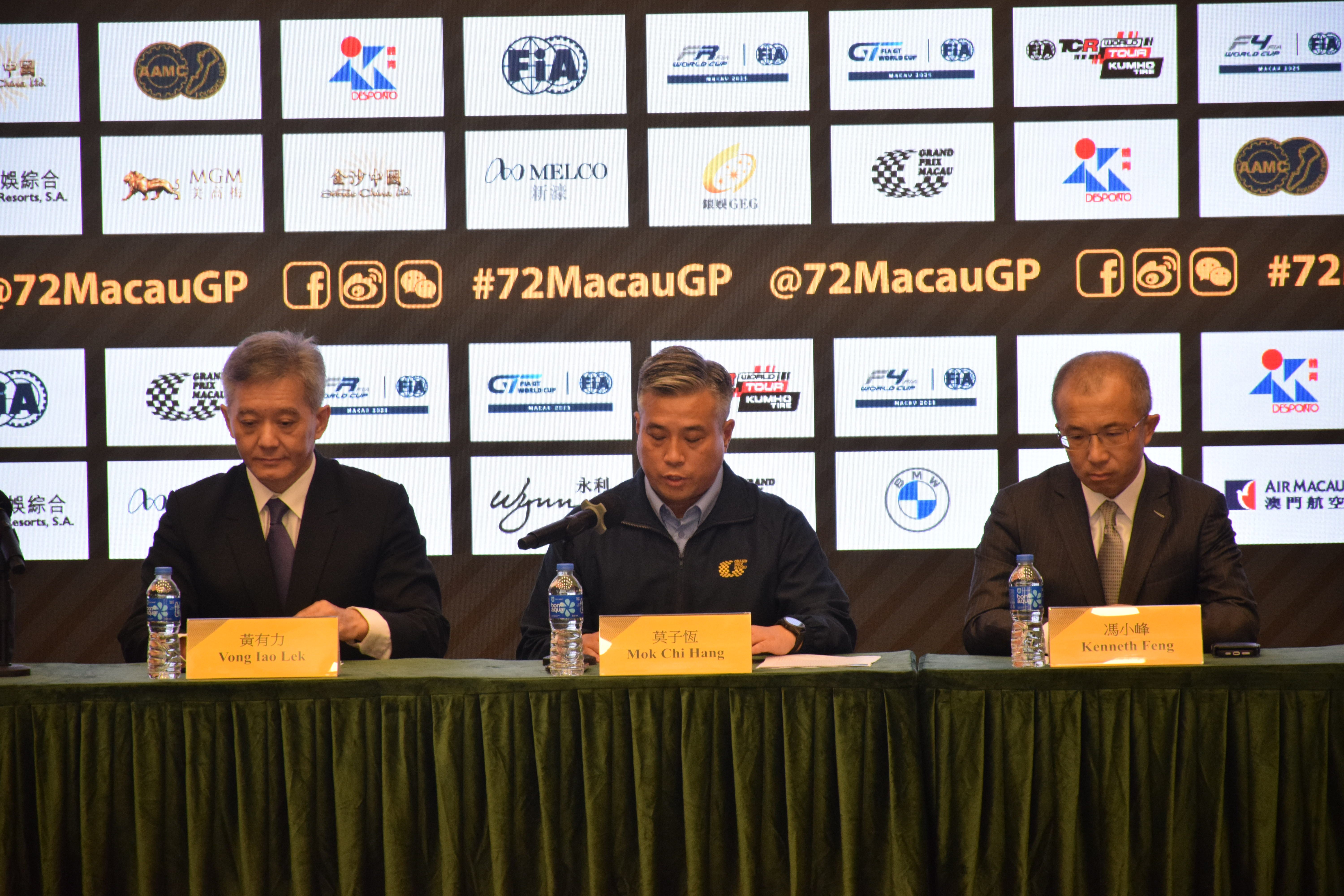 出席新闻发布会的嘉宾包括:澳门特别行政区政府社会文化司司长办公室代主任黄有力;中国-澳门汽车总会会员大会主席及大赛车组委会赛事专责小组组长钟国荣;大赛车组委会助理协调员莫子恒;金沙中国有限公司人力资源高级副总裁张国军;美高梅中国控股有限公司总裁及执行董事冯小峰;新濠博亚娱乐首席顾问黄升雄;澳娱综合度假股份有限公司首席酒店、餐饮及设施业务总监纪睿德;银河娱乐集团董事程裕升;永利澳门有限公司综合度假村市场策略营销总裁邹文瑜;大赛车组委会委员及专责小组成员、其他赞助商代表以及体育委员等。