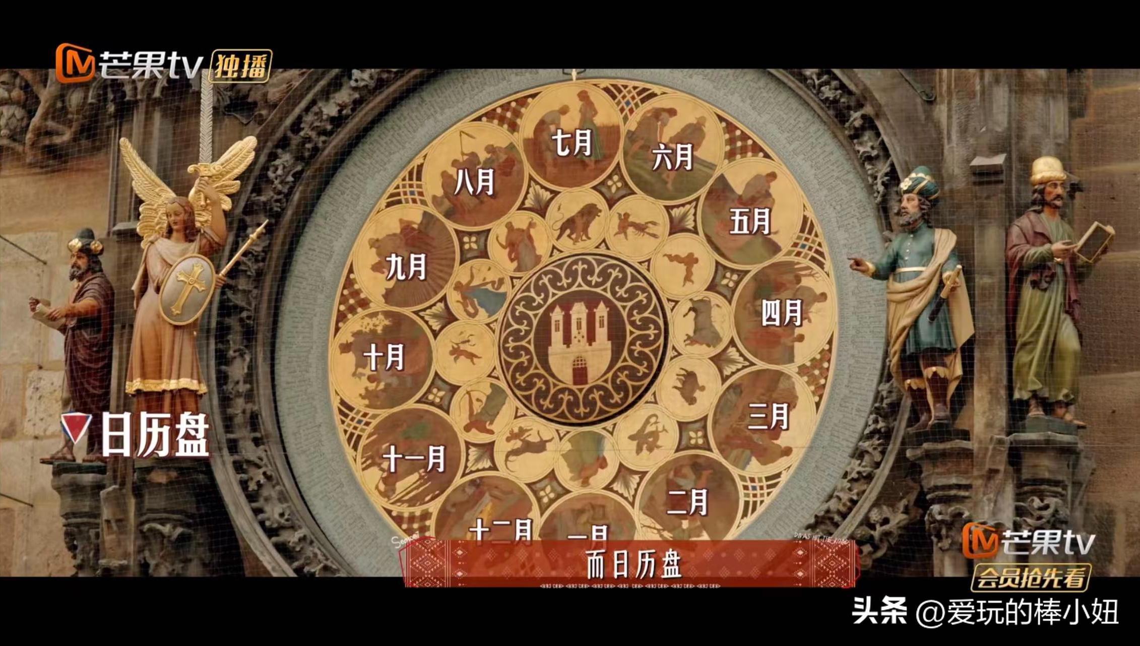 而日历盘,则通过12幅壁画讲述波西米亚农民的一年四季12个月份,最外圈的灰蓝色固定圆环还标注着365天,日期刻度盘面缓缓旋转,顶部金色固定指针,会指向具体的日期。