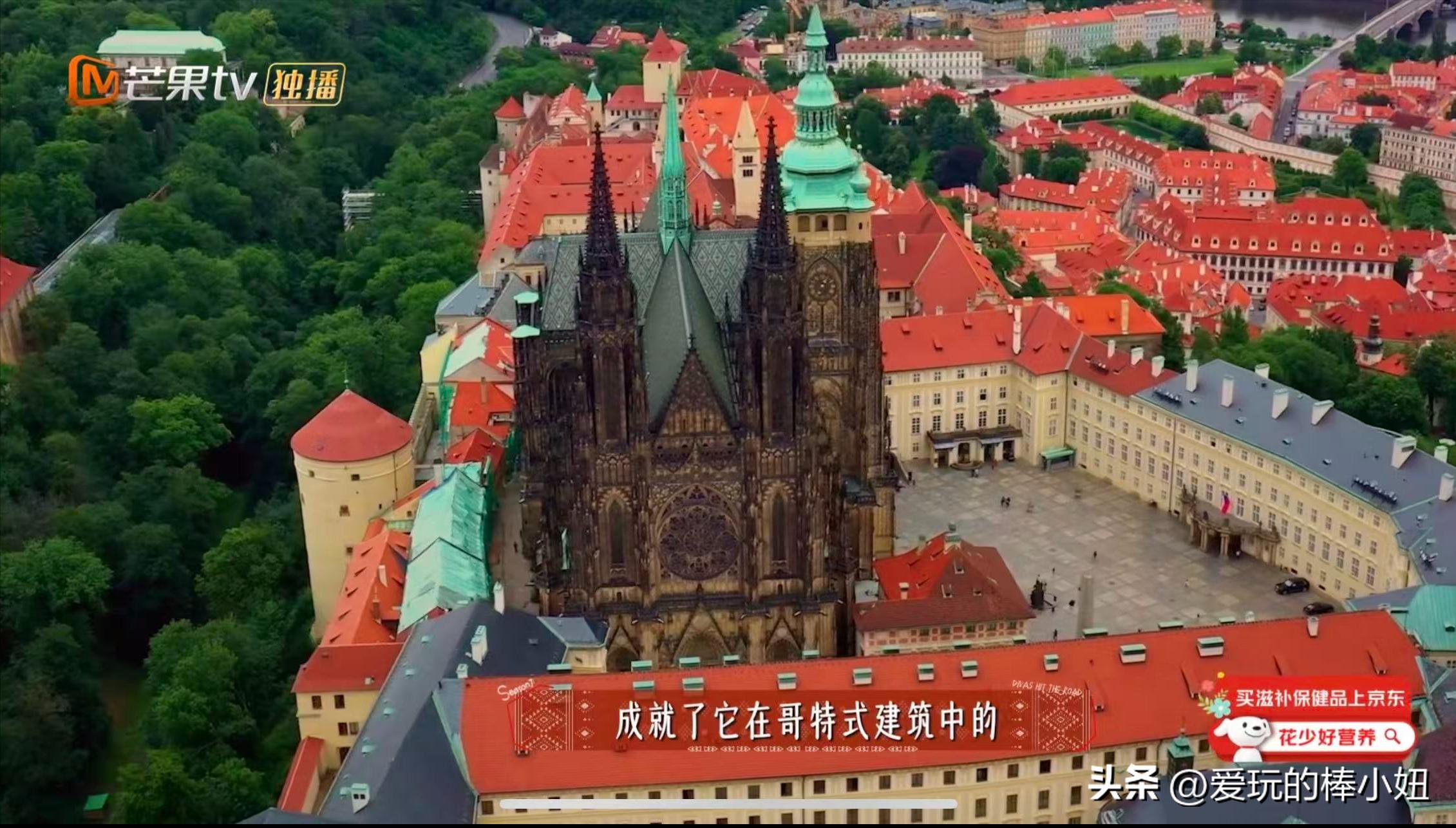 花少团们首先打卡的就是圣维特大教堂。圣维特大教堂的修建,跨度近7个世纪,堪称“世纪大工程”。高耸的塔尖、精巧的飞扶壁(一种起支撑作用的建筑结构部件,凌空跨越下层附属空间),还有华丽繁复的拱柱装饰,每个细节都在拼命炫技,中世纪工匠卓越的技艺和虔诚的匠心,成就了它在哥特式建筑中的崇高地位。