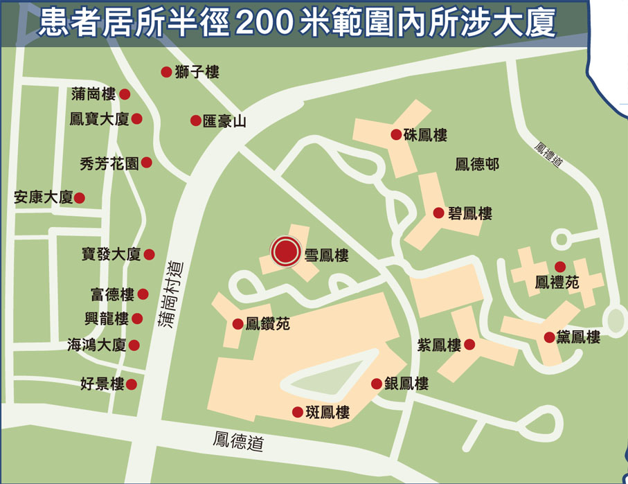 ●10月6日至16日 潛伏期,活動範圍在鳳德邨一帶,包括在附近晨運、到街市及商場購物及接送孫兒到附近上學