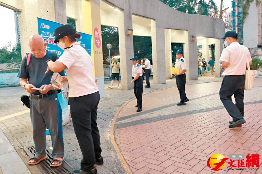●食環署職員在屋邨派發傳單,教導市民防蚊。 香港文匯報記者北山彥 攝