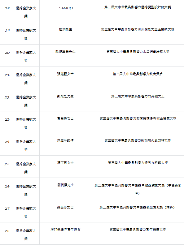 (澳門,2025 年 10 月28 日)由鳳凰天空文創經濟協會主辦、鳳凰天空出 版社承辦、珠海橫琴聚仁文化傳播有限公司協辦的「第三屆大中華最具影響力 品牌及企業家頒獎典禮」,已於 2025 年 10 月28 日(星期二)晚上六時正於永 利皇宮南門二樓宴會廳盛大舉行。本次典禮旨在表彰大中華地區表現卓越的品 牌與企業家,促進跨界交流與合作,進一步推動區域經濟融合與產業創新發