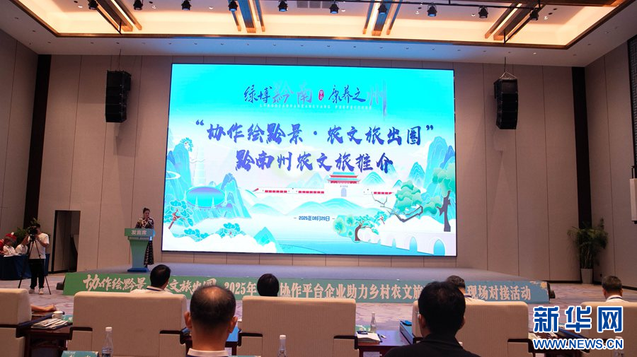 新华网贵阳9月5日电 近日,“协作绘黔景·农文旅出圈”2025年粤黔协作平台企业助力乡村农文旅融合发展现场对接活动在贵州省铜仁市江口县举行。黔南州以线路推介、签约合作、市集成果展示等方式,全方位展现农文旅融合发展新成效,在粤黔协作舞台上交出乡村振兴的亮眼答卷。