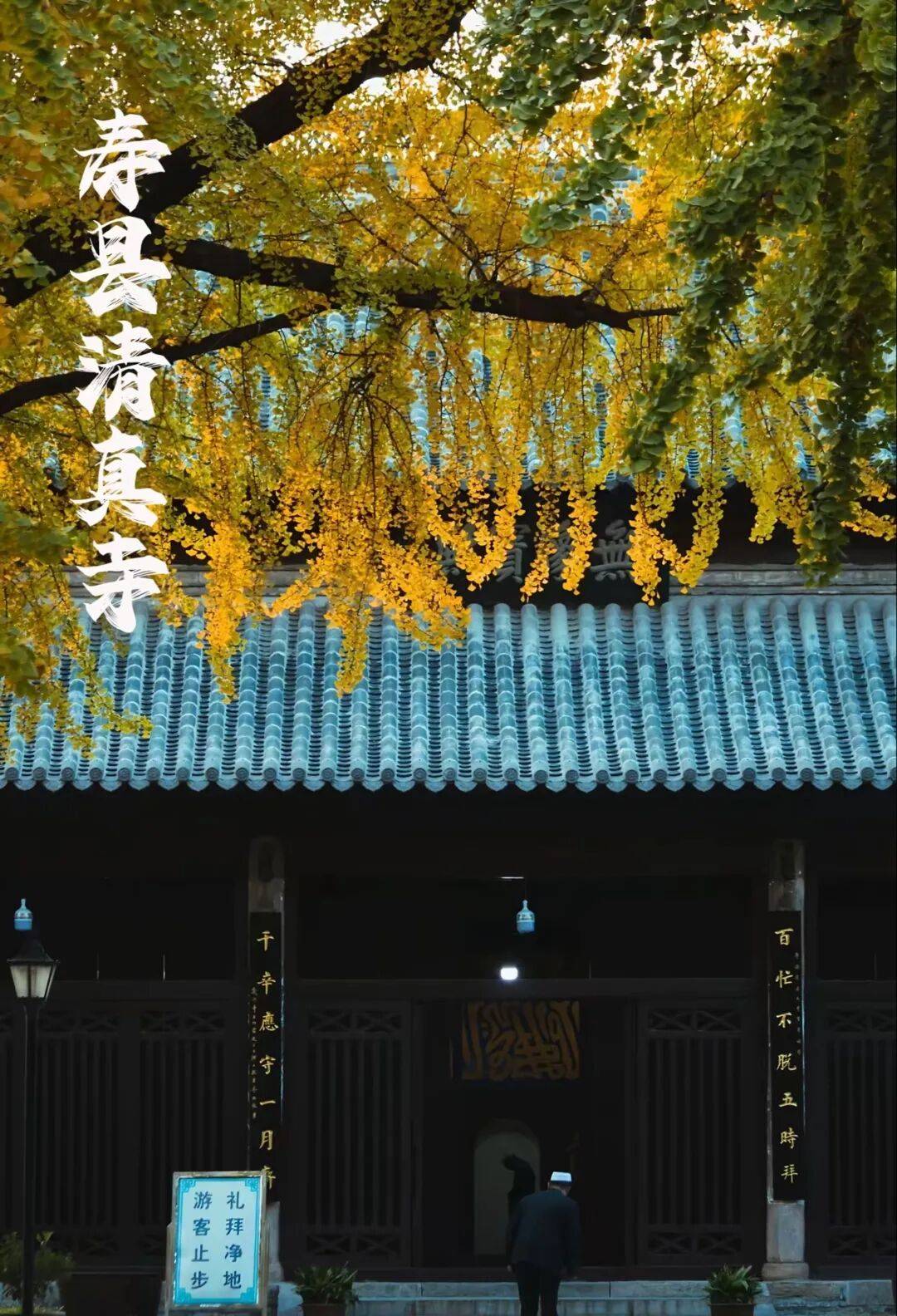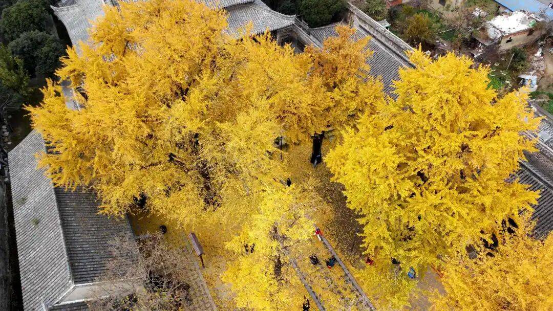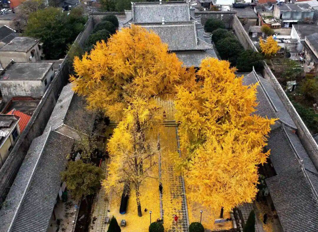 其中最受瞩目的,便是散落在城内东北隅报恩禅寺、西大街的孔庙、西南隅清真寺,的11株“国宝级”的银杏。每一处都藏着与时光共生的金黄秘境。
