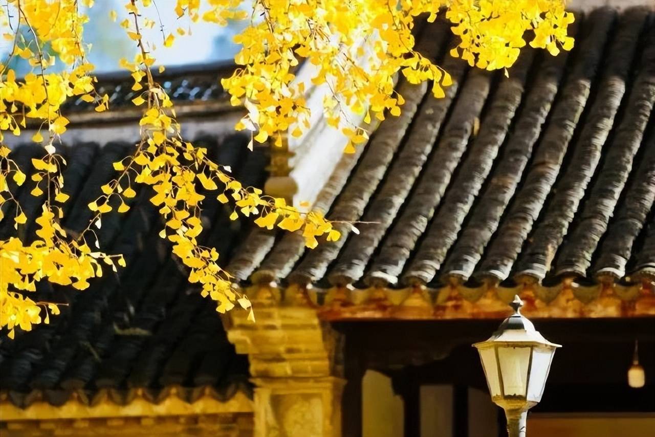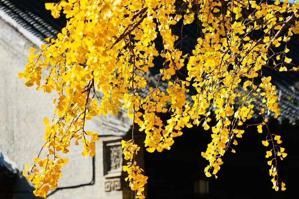 暖阳下,银杏叶褪去青涩、换上鎏金盛装,在初冬的天光里熠熠生辉,绽放出迷人的光芒;微风轻拂,飘落的黄叶宛如成群的金色蝴蝶在空中翩翩起舞,为古朴的石板路、黛瓦老屋披上一层柔软的金色华毯。