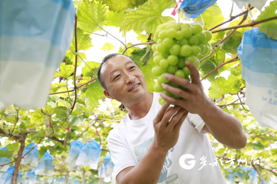 多彩贵州网讯 金秋十月,贵定县盘江镇清定桥村的鑫淼阳光有机葡萄种植基地里,一串串饱满的“阳光玫瑰”如绿宝石般挂满枝头,2万余斤优质葡萄已进入最佳采收期。