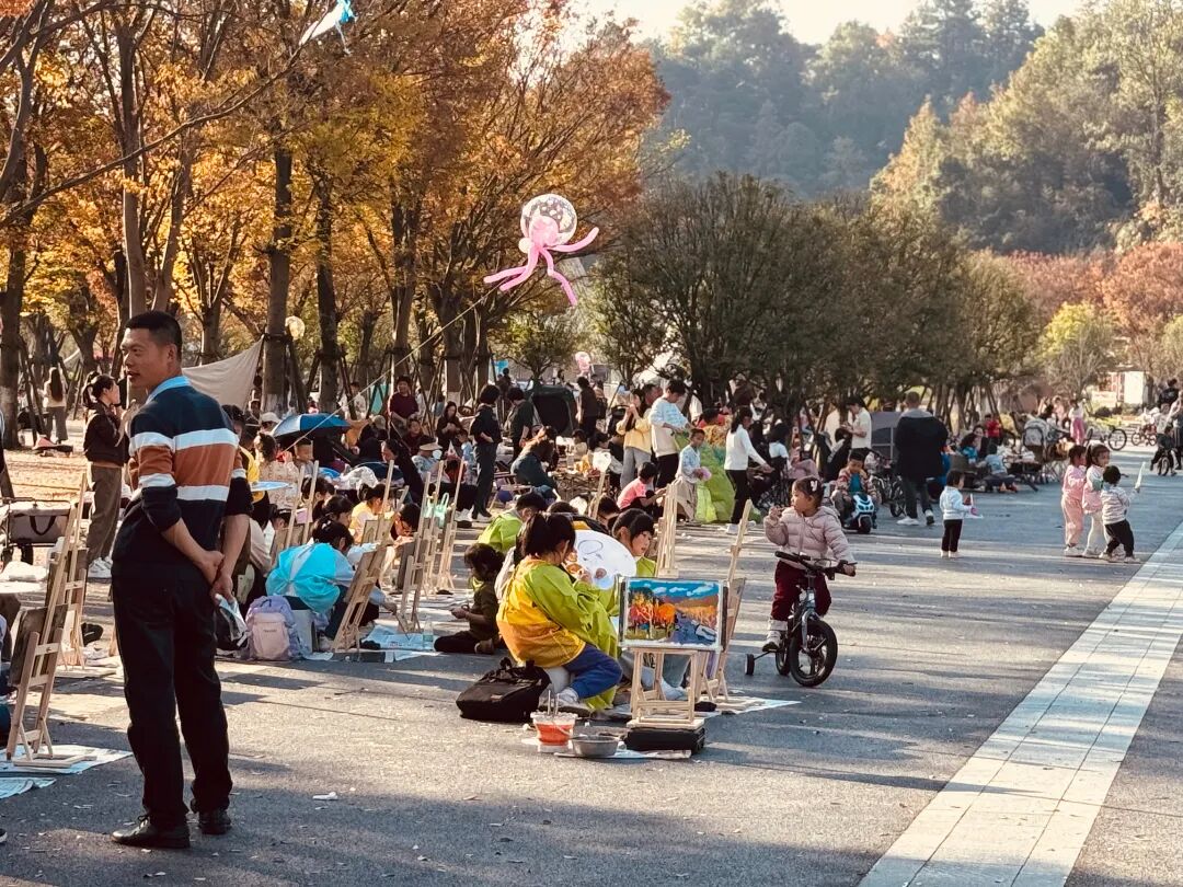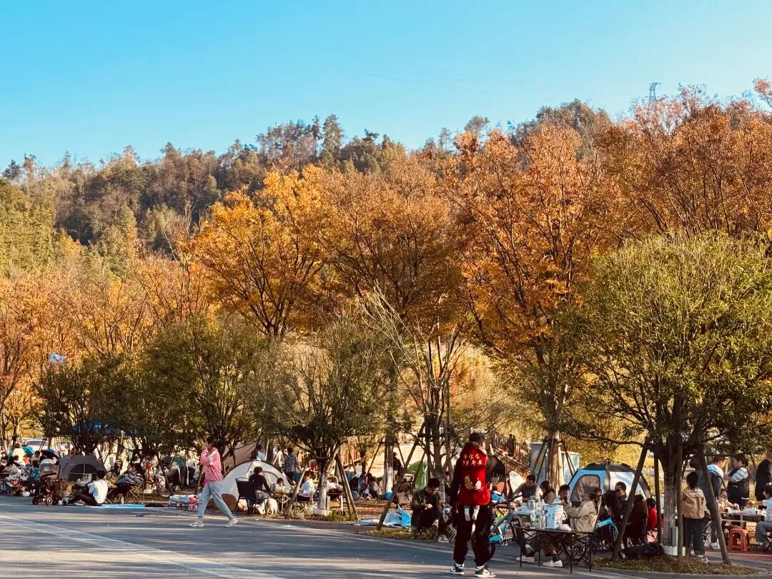进入11月,贵州绿博园东门千米红枫大道迎来最佳观赏期,火红色与金黄色的叶片交织成 “油画长廊”。近日,贵州绿博园红枫露营美食节吸引游客扎堆打卡,成为周末休闲度假的好去处。