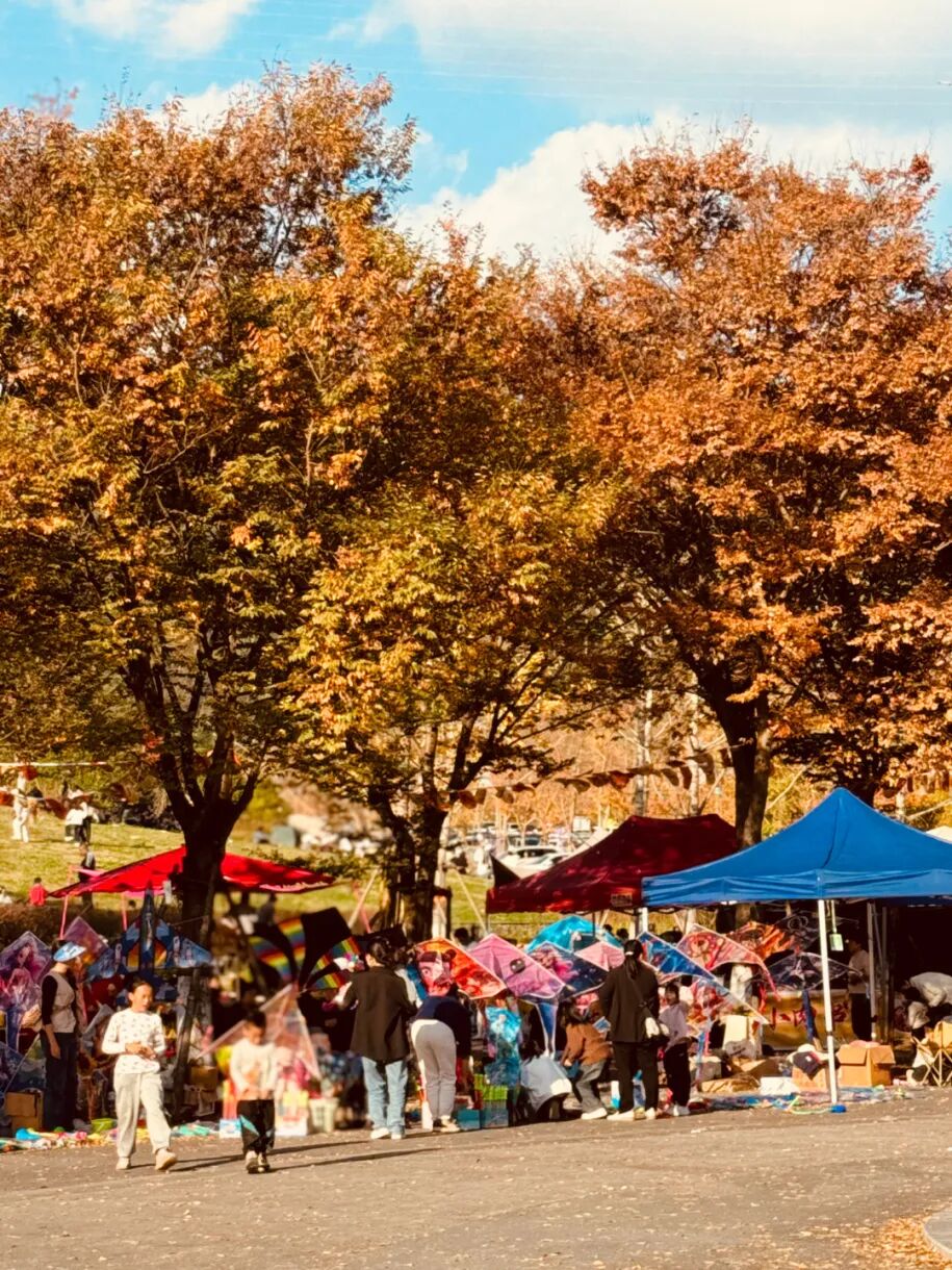 走进绿博园东门,步道早已被游人填满,在彩林间漫步、唱歌、起舞,在草坪上露营、喝茶....红枫大道被 “人从众” 的热闹场景环绕。