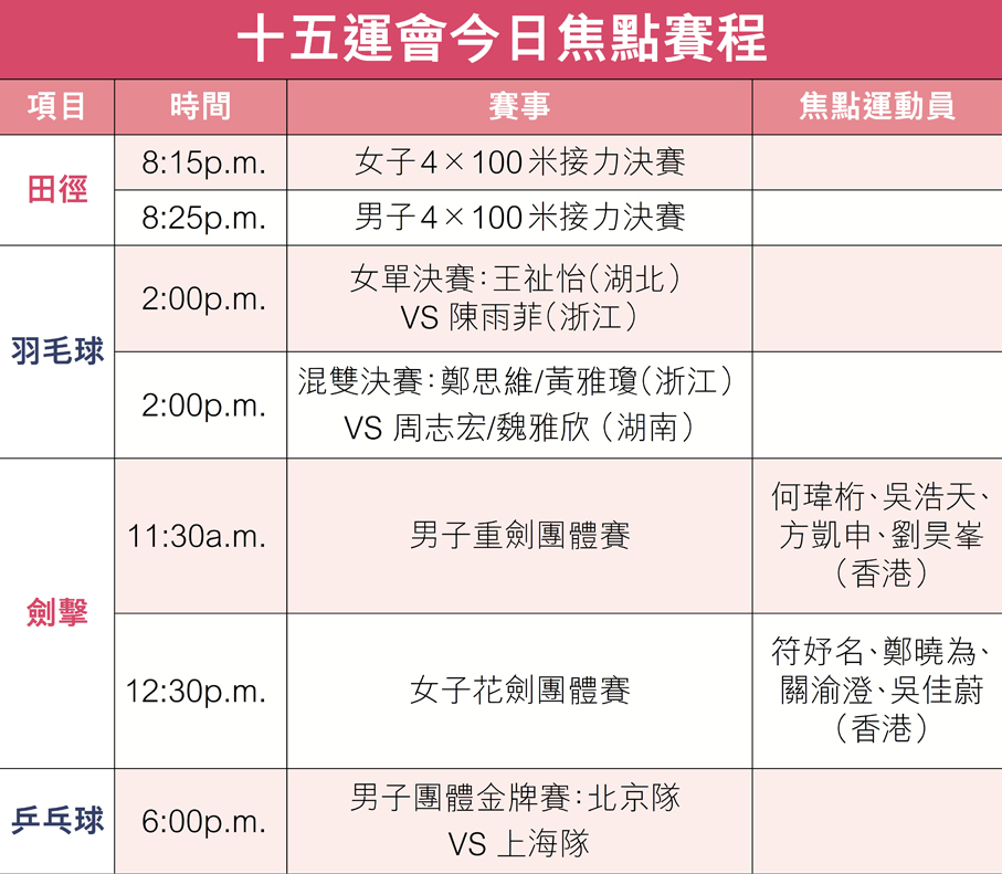 (香港文匯報記者 張發兒)由張家朗、蔡俊彥、梁千雨及吳諾弘組成的男子花劍港隊,昨日(19日)在十五運會男子花劍團體賽刺出歷史新一頁,他們在決賽以45:34力克福建隊,為香港劍擊項目取得全運會歷來首面金牌。四人均認為,能夠實現劍擊全運金牌「零的突破」的關鍵在於團結精神及互相信任。決賽負責「守尾門」的蔡俊彥(Ryan)更希望藉住這股氣勢,為香港劍擊創造更多歷史 。