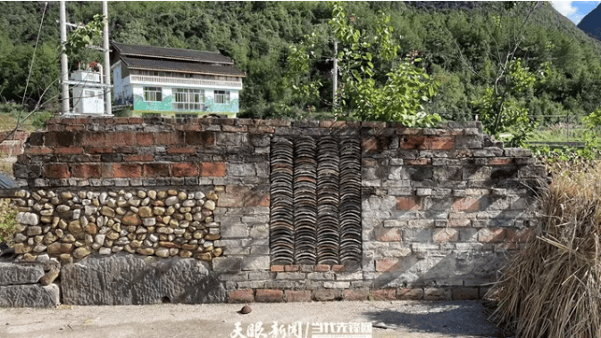 村民在艺术家的指导下,利用当地建材,把院墙堆砌成了有趣的模样。袁蓠芊摄