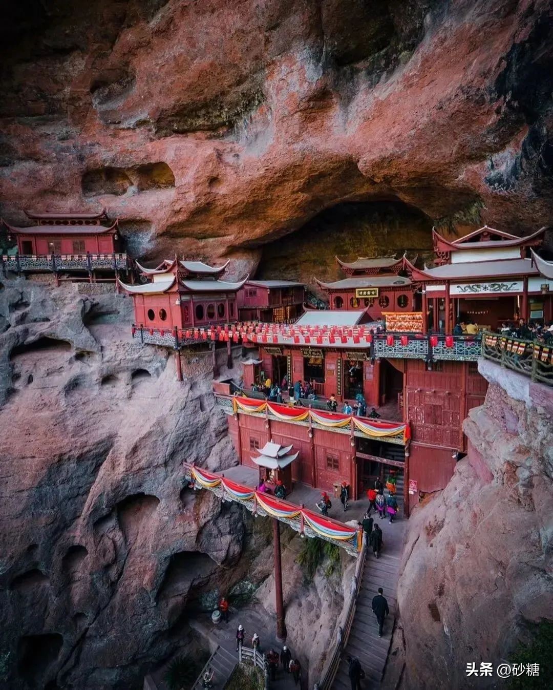 只靠着一根柱子便可以支撑900多年!它就是「甘露寺」。甘露岩寺位于泰宁金湖景区内,始建于宋绍兴十六年。是泰宁状元叶祖洽为母亲还愿所建。由于寺庙所在的丹霞岩穴里有块形状像龙头的钟乳石,一年四季甘泉流淌,水质清甜甘冽似甘露,故名甘露寺。