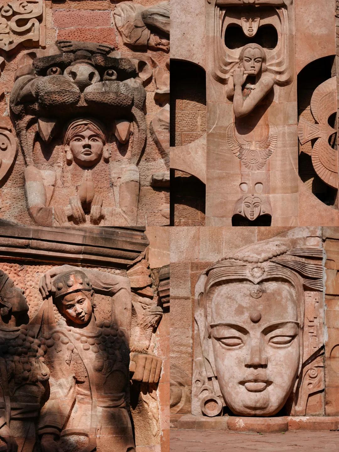 谁能想到德阳藏着这样一座石刻艺术迷宫?! 粗犷的红砂石雕塑、哥特式的建筑结构、充满故事感的浮雕群,每一处都像是从复古电影里抠出来的场景,暗黑风、复古风、艺术感……各种风格都能轻松驾驭,随手一拍就是杂志大片既视感。