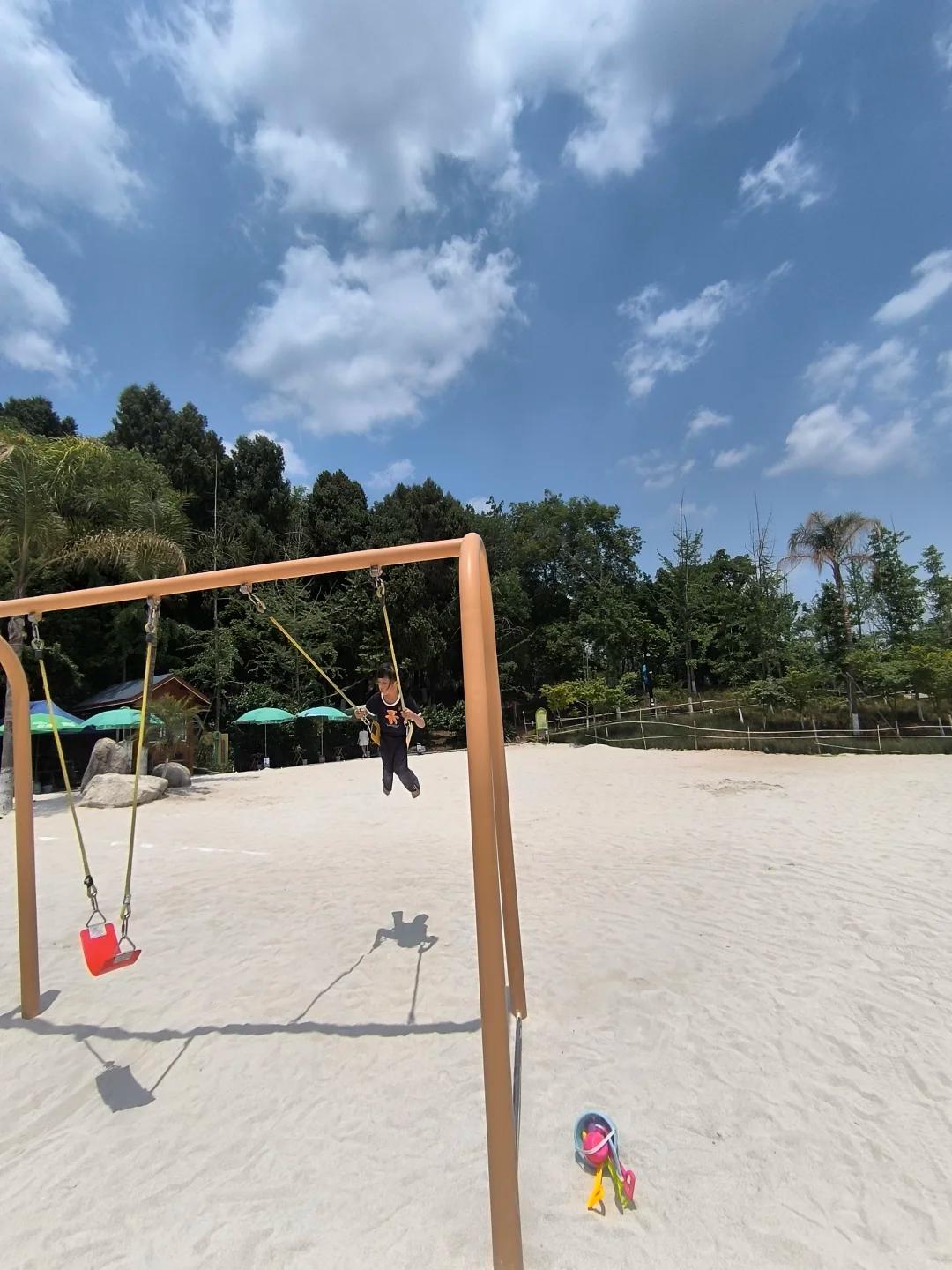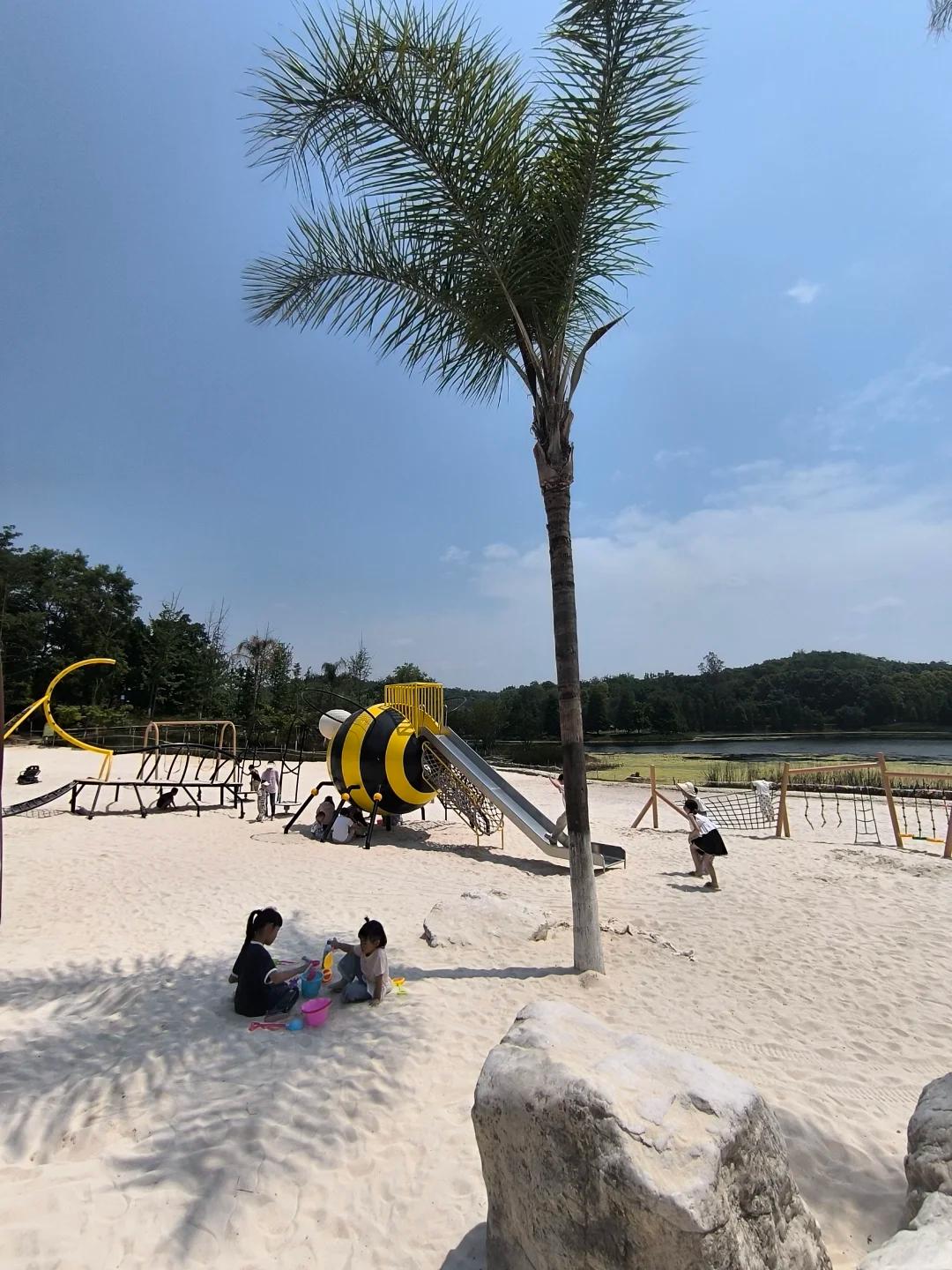 2️⃣有湖,有树,有山,有草坪,还有沙滩,超适合周末亲子徒步遛娃