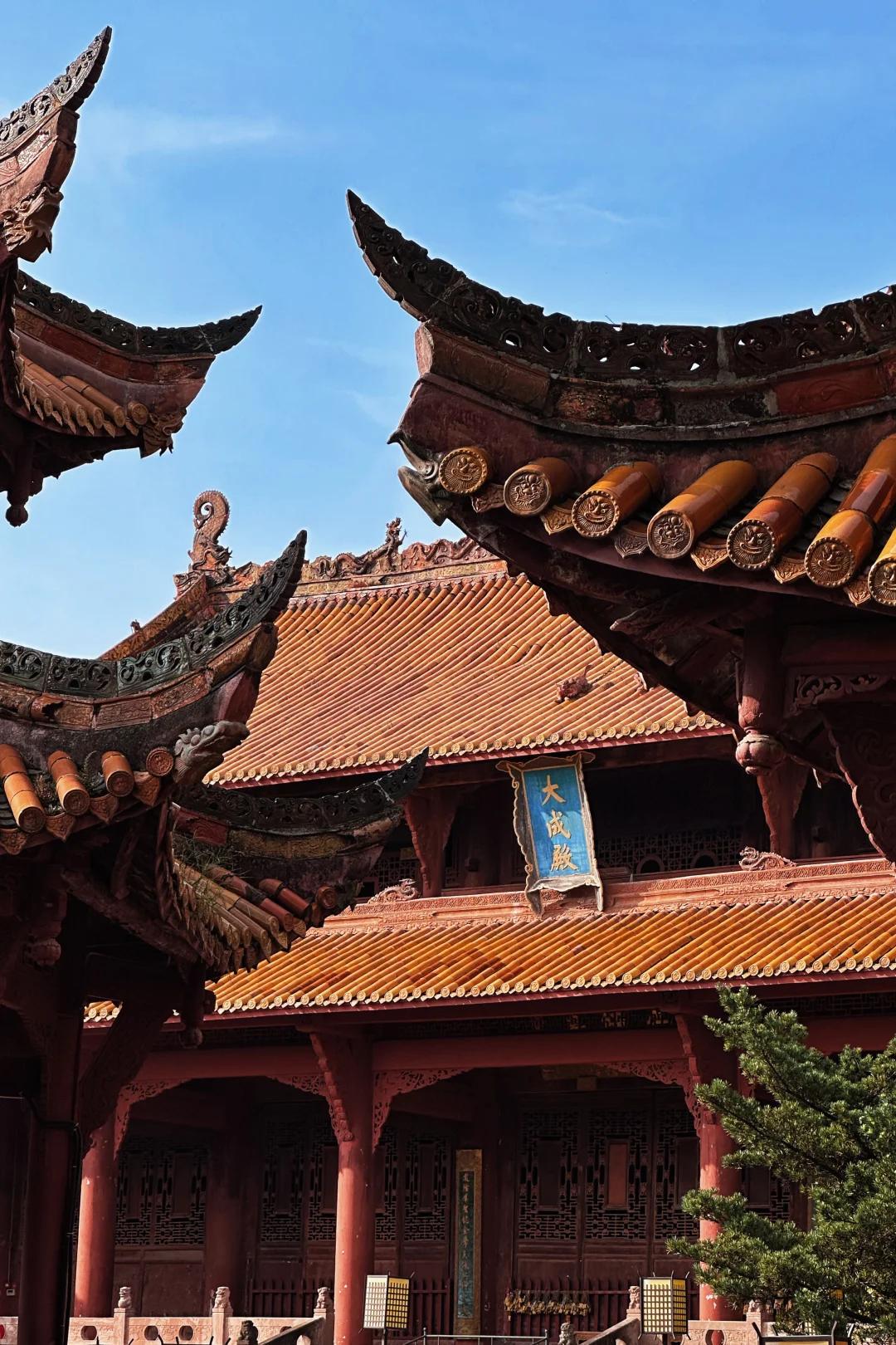 参观线路:万仞宫墙➡️棂星门➡️泮池与泮桥➡️戟门(大成门)➡️礼乐亭➡️大成殿➡️启圣殿(后殿)➡️ 东西庑殿 .