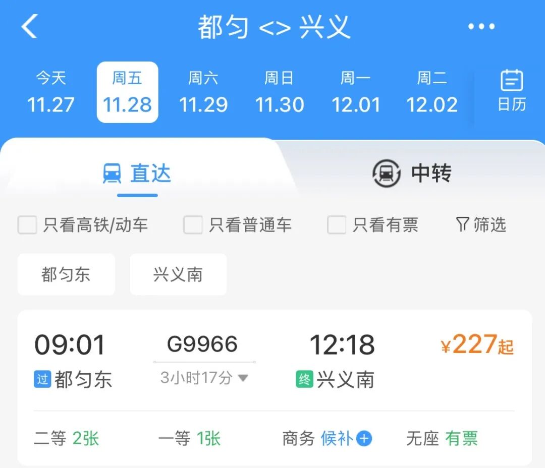 都匀东至兴义南全程3小时17分钟,