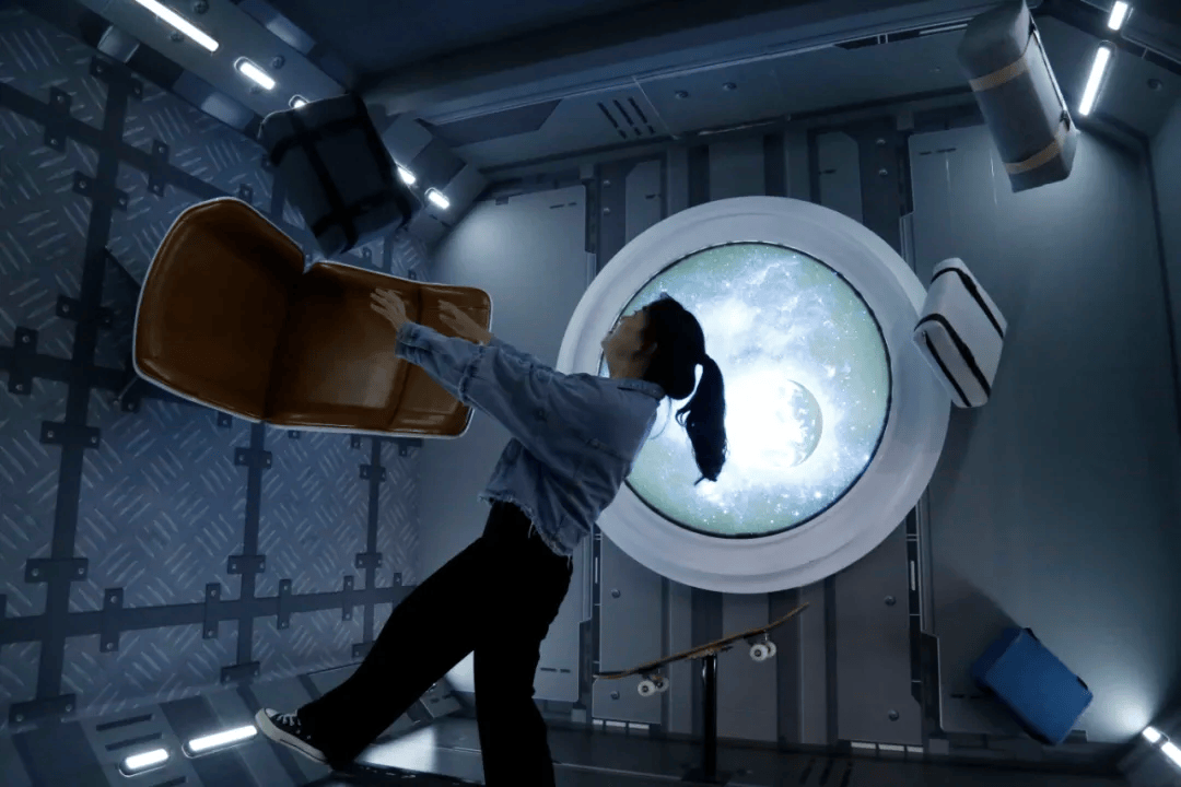 在天文体验馆旁,充满未来科技感的九号宇宙航天馆内,包含了各种各样的沉浸游览、航天互动体验、航天博物展示和科技娱乐项目。