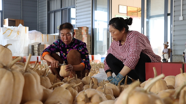 大棚之外,仓储分拣中心里亦是一派热火朝天的繁忙景象。刚从田间新鲜采摘的水果南瓜,被源源不断地运抵这里,工作人员分工明确,手脚麻利地分拣、装箱、封单,各个流程有条不紊。不远处的直播区,主播正对着镜头热情推介,一手托着刚摘下的水果南瓜,实时回应网友咨询,互动氛围热烈,订单提示音此起彼伏。