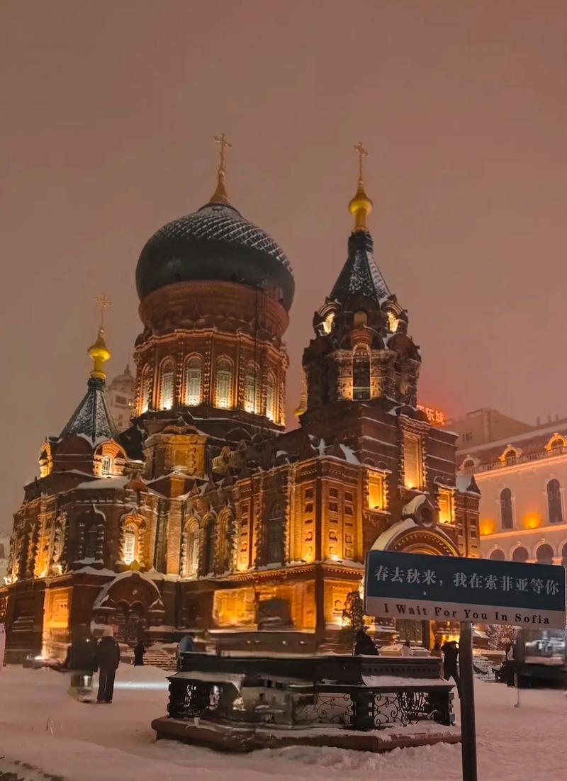 游园后,再去全国著名的哈尔滨市中央大街逛逛,观赏一下欧式历史建筑索菲亚大教堂,感受一下异国风情。