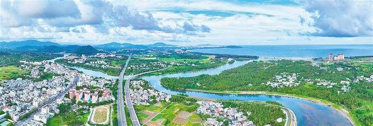 俯瞰藤桥河穿三亚海棠区藤桥社区而过。记者 王程龙 摄
