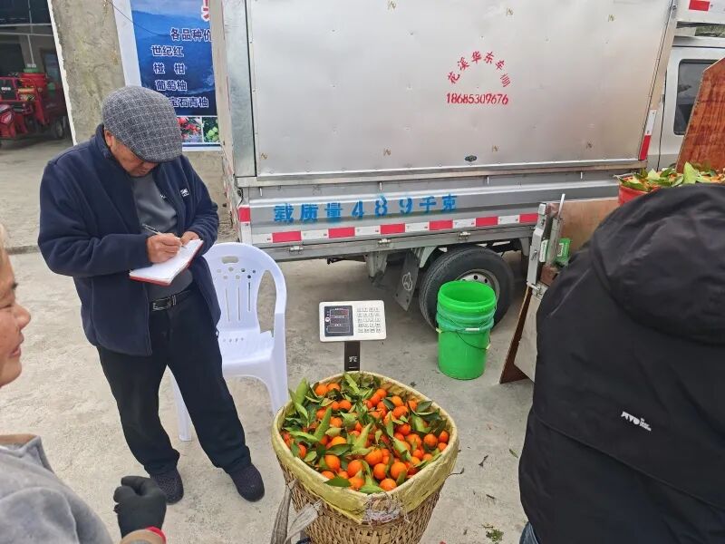 “昨天运回去的5000斤已经快卖完了,市场反响很不错,今天计划采摘5000斤,明天还要把他家这片果园包下来采收。”来自修文的水果收购商李老板表示,他是通过抖音视频了解到这里的柑橘,实地考察品尝后,对品质和价格都非常满意,于是决定大量采购。