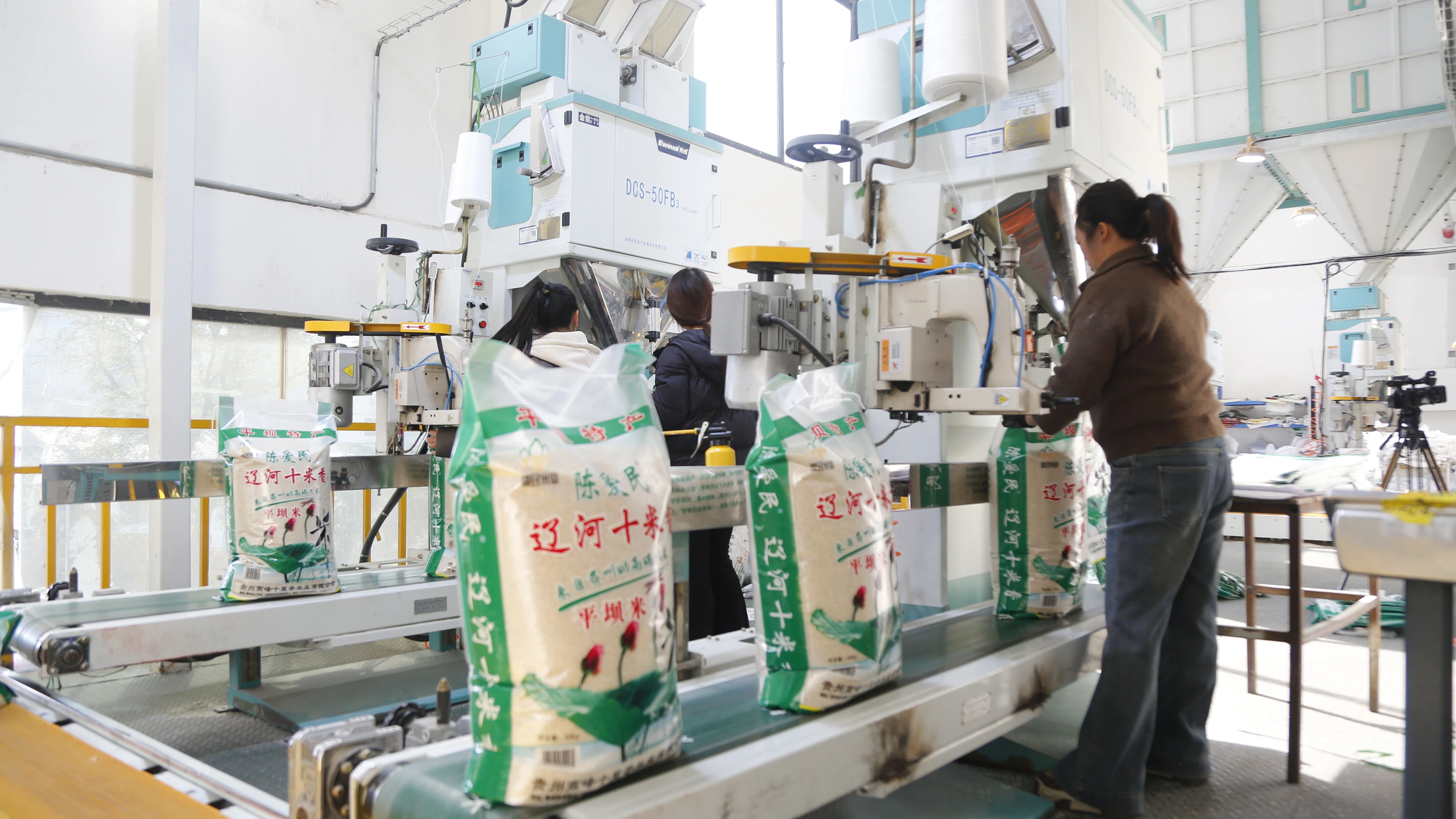 当前正值大米加工旺季,深夜11点,在长顺县经济开发区广顺产业园区,依旧是一片热火生产景象,贵州爱民米业集团厂区内灯火通明,7条现代化生产线高速运转,机器轰鸣声此起彼伏。稻谷从原料仓进入生产线后,经过筛选、谷米分离、抛光、色选等十几道标准化工序,摇身一变成为晶莹饱满的成品大米;包装车间里,工人只需在控制台前监控设备,大米便能通过半自动化设备完成称重、装袋、封口,随即装车发往全国各地,其销售网络线上覆盖全网,线下则辐射贵州、四川、云南、广州等地区的600多家商超和批发市场。