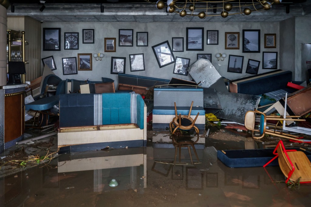 ▲“樺加沙”發出期間,將軍澳南海濱長廊有餐廳被海浪衝毀。