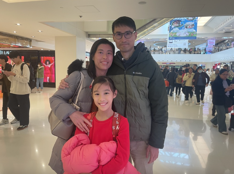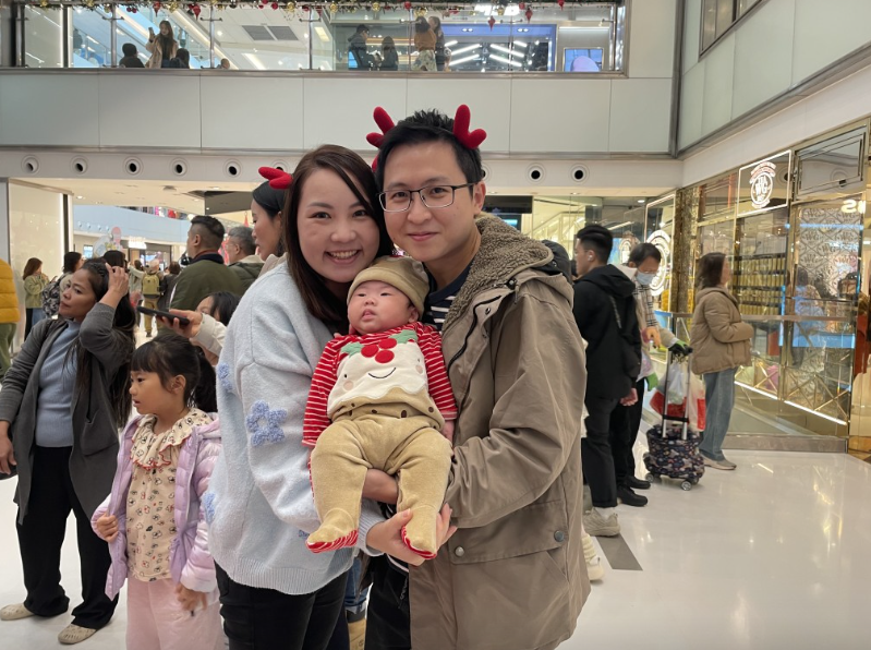 ▲同樣住在附近的翁先生一家三口到商場感受節日氣氛。