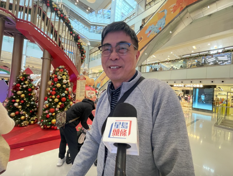同樣住在附近的翁先生一家三口到商場感受節日氣氛,他形容商場人流很多,聖誕節氛圍濃厚,“能感受到香港經濟不錯”。他表示,剛從外地旅行回港,“女兒想購物,所以就帶她出來看看”,沒有特定目標。翁小朋友則表示“甚麼都可以買”,商場內也很好玩。