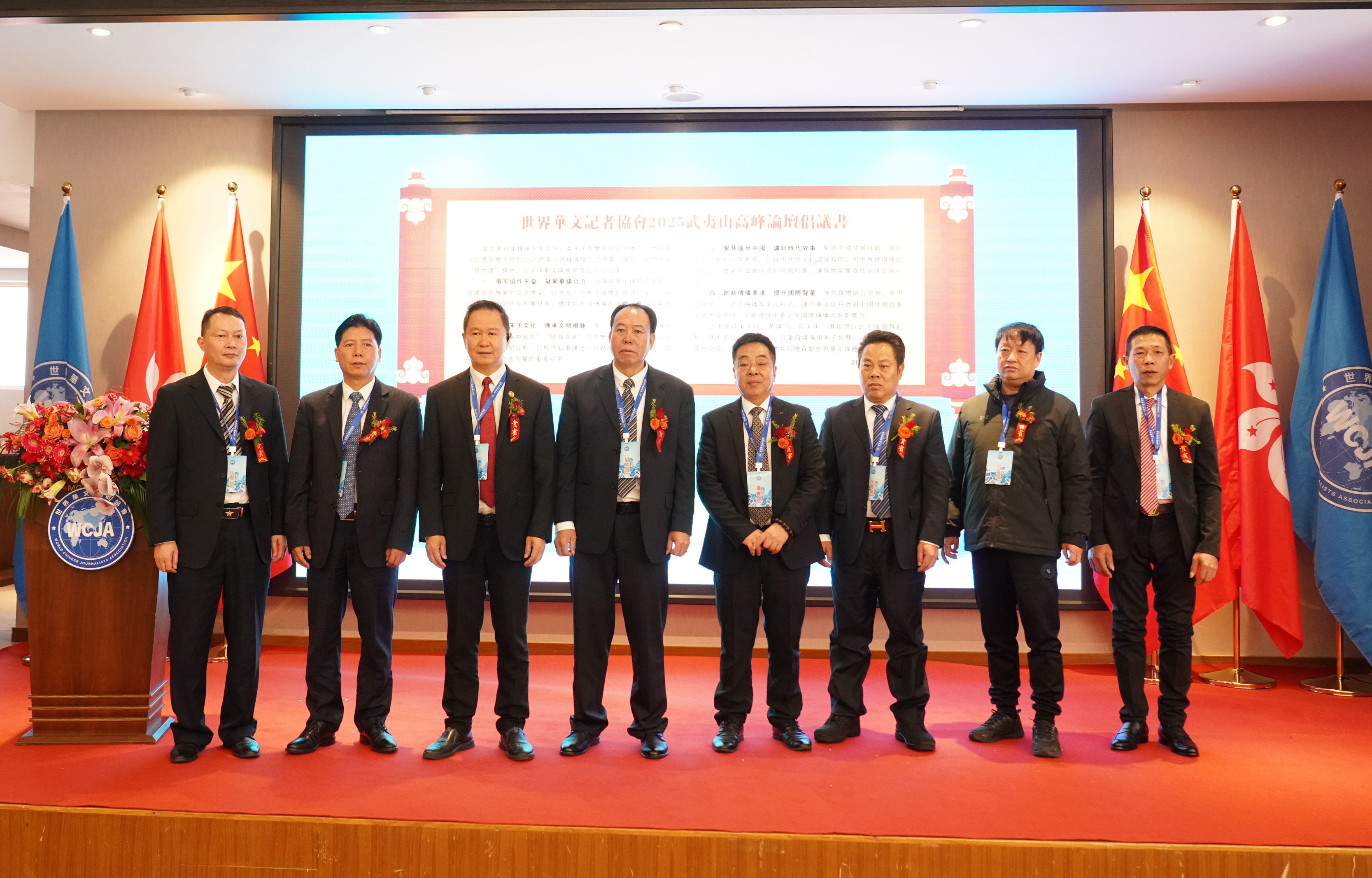 上午十一时十五分,本次论坛的重要成果——《世界华文记者协会武夷山高峰论坛倡议书》正式发布。主持人宣读了倡议书全文,现场响起热烈掌声。