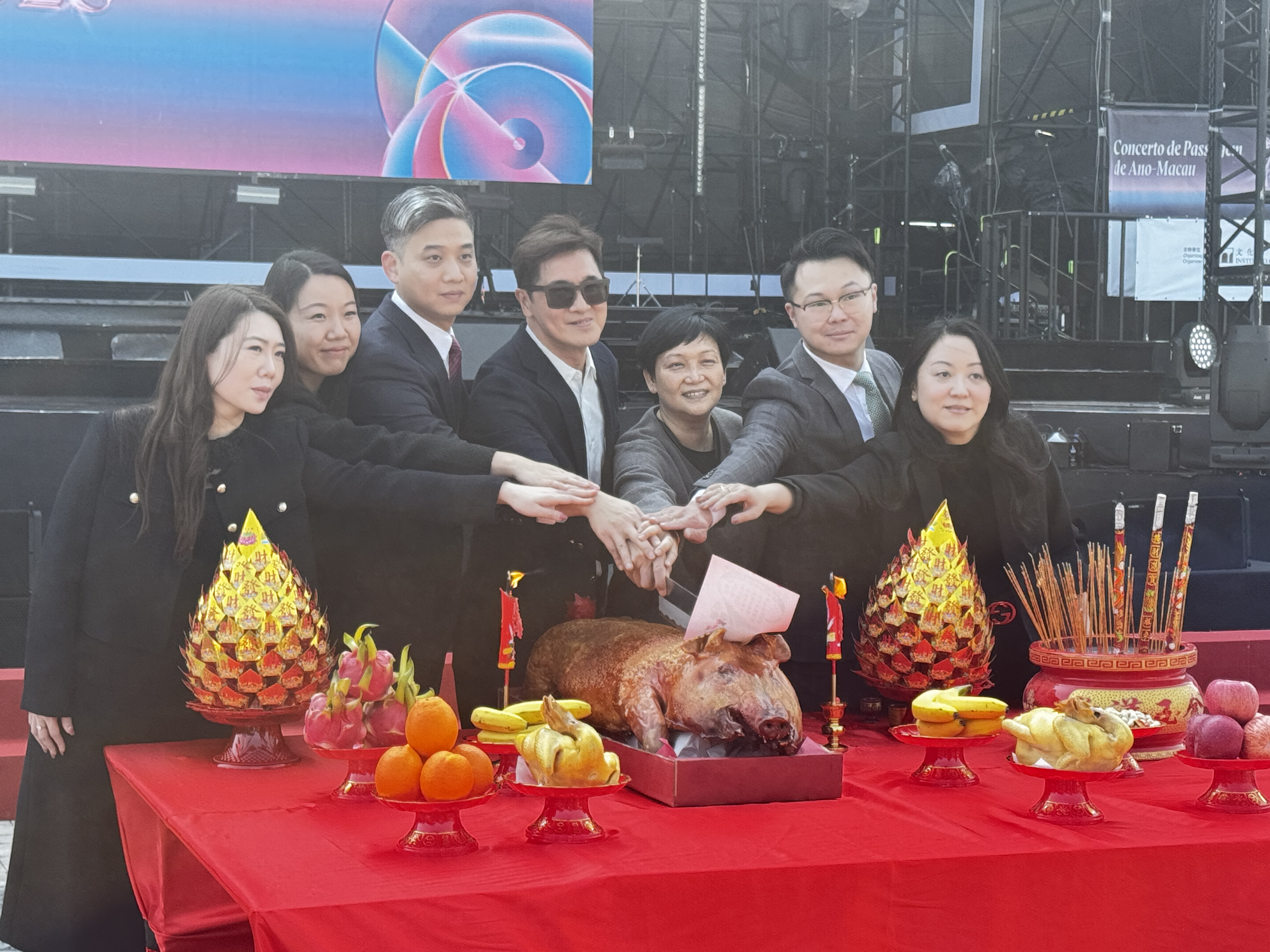 “2025澳門除夕倒數演唱會”與“2025氹仔除夕倒數晚會”將於12月31日晚上分別在西灣湖廣場及龍環葡韻舉行,澳門場次活動今天(30日)舉行拜神儀式,文化局副局長鄭繼明、澳娛綜合度假股份有限公司企業品牌發展及市場推廣部活動推廣及娛樂策劃副總裁溫敬德、美高梅品牌策劃助理副總裁凌蕙金、銀河娛樂集團公共關係傳媒關係助理副總裁梁玉萍、永利澳門及永利皇宮品牌及廣告行政總監陳家明、金沙中國有限公司品牌及度假村營銷行政總監葉芷雅、新濠博亞娛樂企業傳訊總監賴珮君等各主辦單位代表,聯同協辦單位與支持單位的代表,以及一眾演藝人員出席,祈願活動順利圓滿。兩項演唱會在倒數環節中不設煙花表演,敬請觀眾留意。