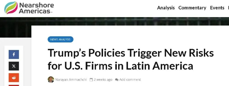 同时,美国一些商业机构去年也在相继推出面向美国企业的咨询建议,以躲避国际地缘政治风险和关税为由,引导这些企业在拉美地区做“近岸制造”。
