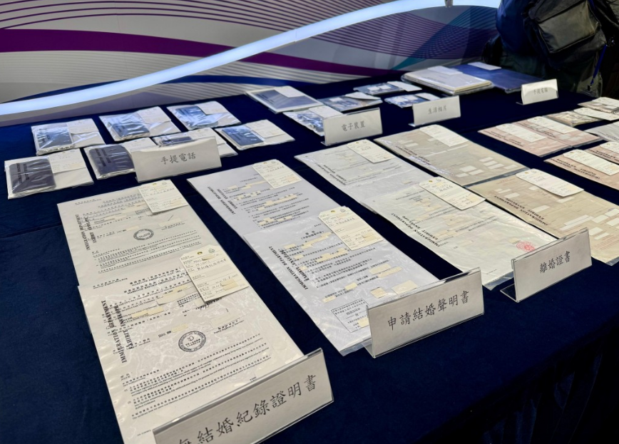 入境處與內地執法機關於去年11月舉行聯合行動“閃刺2025”,成功搗破多個跨境假結婚犯罪集團。入境處署理總入境事務主任 (調查行動)鄧偉業分享,其中一個個案涉及一名20多歲本地女學生,她因過度消費欠下10萬元信用卡債務,其後於在二手買賣平臺見到“短時間搵快錢”廣告,聲稱只需與非本地居民假結婚,3天即可賺取10萬元。犯罪集團指示她向入境處申請無結婚紀錄證明書,並親身陪同前往內地進行假結婚,惟她只收到3萬元報酬,其餘報酬需待對方申請單程證併成功來港定居纔可取得,她雖感上當,但因已辦理結婚手續,只能繼續協助,最終被處方透過情報分析鎖定並拘捕。