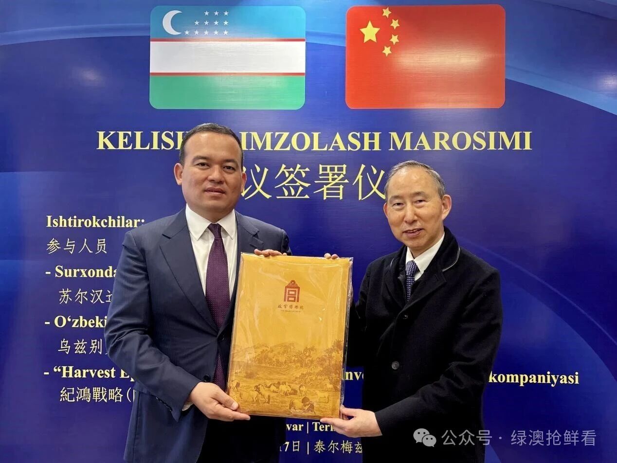 1月17日,中国国际文化传播中心执行主席龙宇翔率代表团一行与乌兹别克斯坦苏尔汉河州州长乌鲁格别克·卡西莫夫在苏尔汉河州铁尔梅兹亲切会见,并受邀出席与见证合作协议签署仪式,双方就全面开启在文化教育、经贸投资等领域的长期战略合作深入交换意见并达成共识。