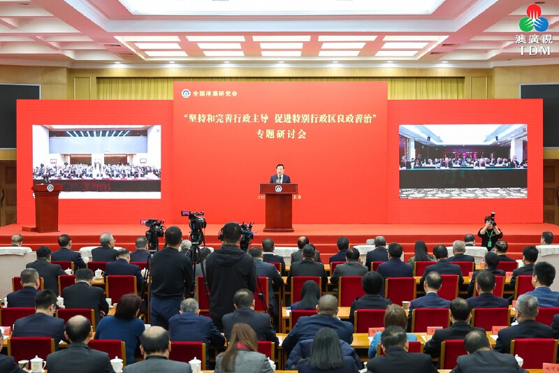 2026-01-26 13:2020710(澳門電台消息) 國務院港澳事務辦公室表示,1月26日上午,全國港澳研究會在北京舉行“堅持和完善行政主導 促進特別行政區良政善治”專題研討會,中共中央港澳工作辦公室、國務院港澳事務辦公室主任夏寶龍出席研討會並致辭。