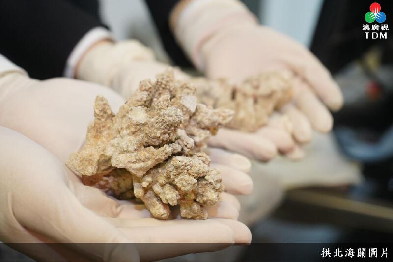 拱北海關表示,灣仔海關上月 (12月) 28日監管出境旅客行李物品時,發現涉事旅客的行李機檢圖像異常,並在袋中查獲疑似 2件珊瑚製品,重約 472.9克。經拱北海關技術中心鑒定為瀕危物種,屬國家禁止出境物品。