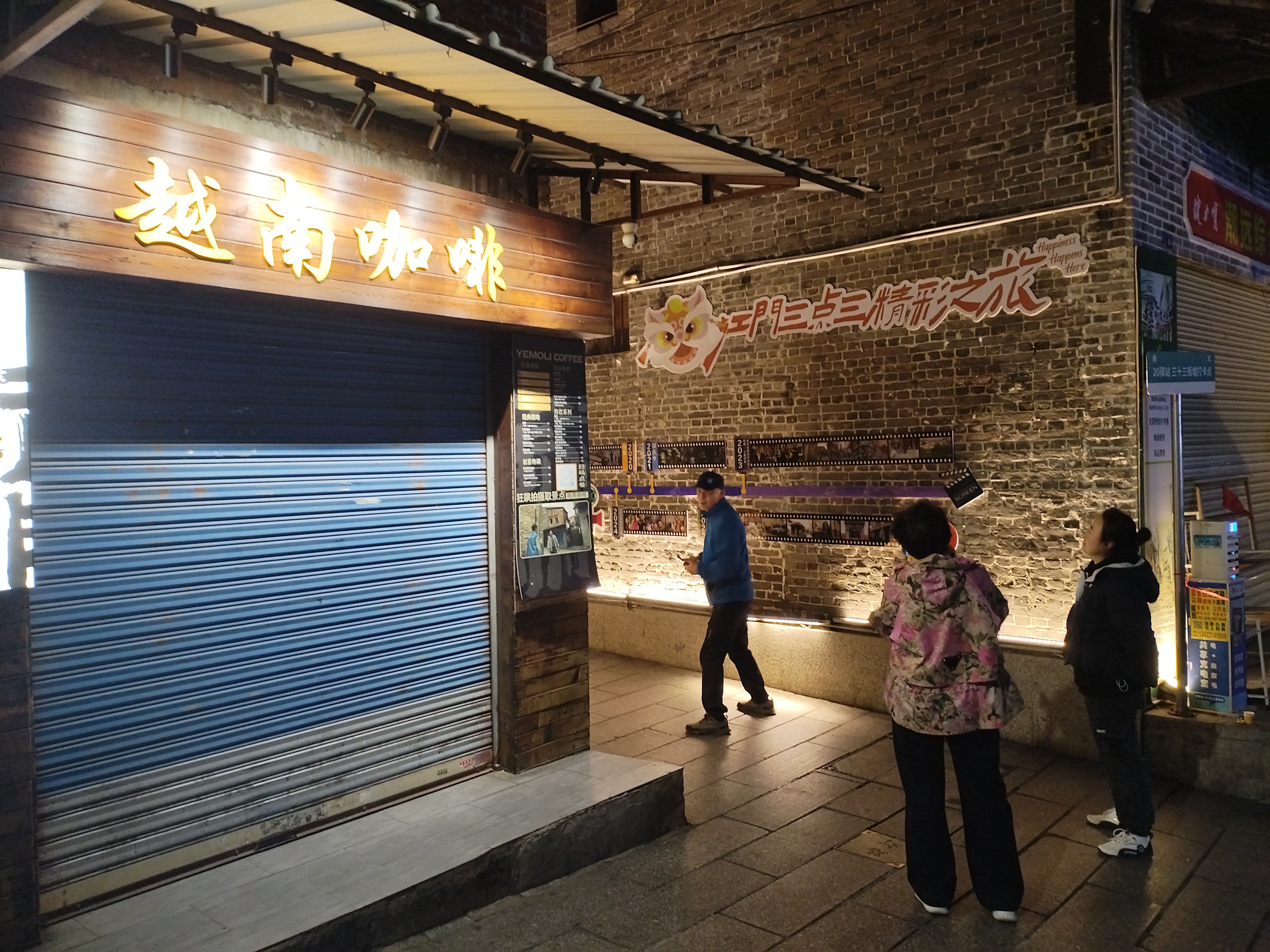 街口的墙边,正是剧中高启强和高启盛兄弟、身穿强盛小灵通蓝马甲交谈处。