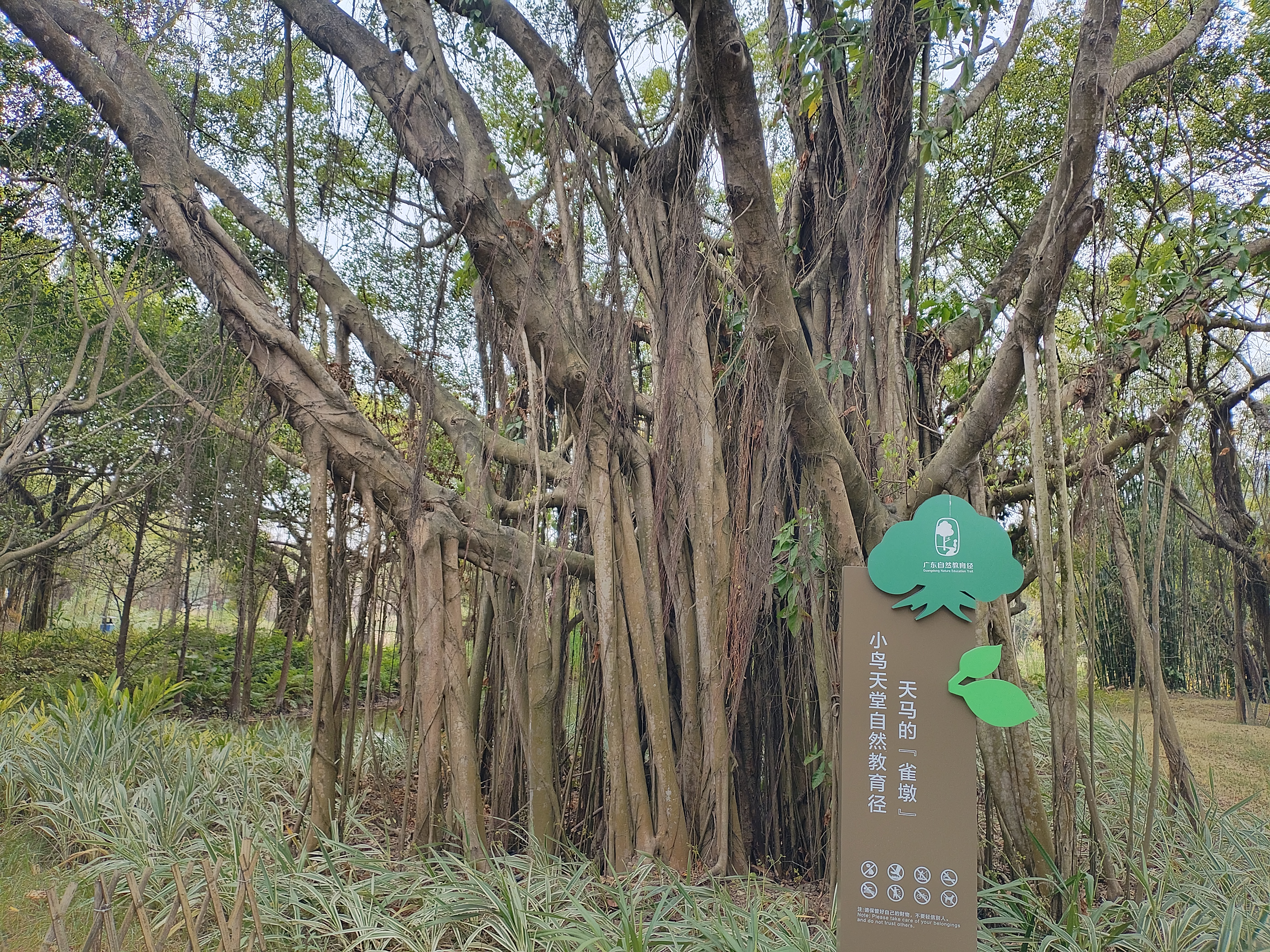 小鸟天堂的主体是一棵长于明末清初的水榕树。其树枝须根及地,扎入土中萌发,长成新的树干,经年累月,水榕树独木成林,覆盖面积达1.3万平方米,林中栖息着数万只鸟雀。