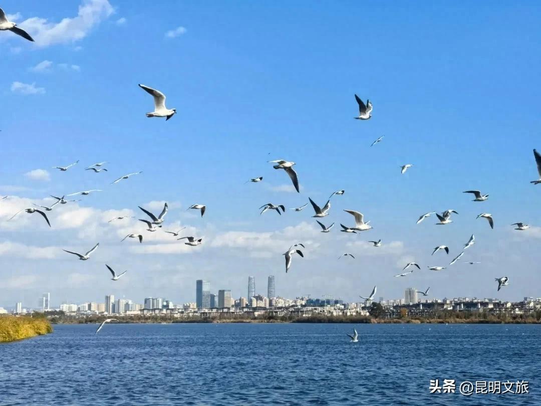 冬天的滇池边,海鸥与鲜花共同描绘出一幅灵动画卷。推荐线路一专门为想要享受滇池美景春日风光的朋友准备。