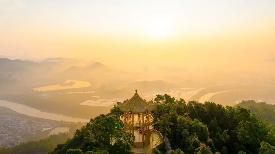 ▲ 肇庆风光何处寻?金象山顶揽乾坤!金色朝霞映照金象山。邹华彬 摄