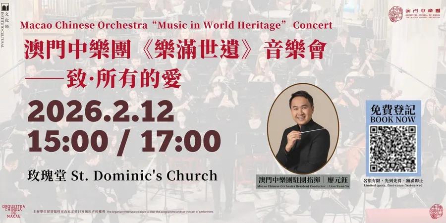 2月12日,澳门中乐团将于澳门历史城区的玫瑰堂举行“致·所有的爱”主题音乐会,演奏多首不同风格的经典乐曲,将中式优美与西式典雅结合起来,诚邀各位乐迷莅临,共同感受音乐与宗教、建筑美学交织的魅力。