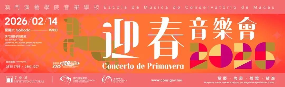 在情人节这天,澳门演艺学院音乐学校将为观众带来《迎春音乐会2026》,以音乐提早送上新年祝福。一众优秀学生及澳门演艺学院中乐团,以及多位毕业校友分别为观众演绎多首名曲,一展澳门青年音乐家的实力。