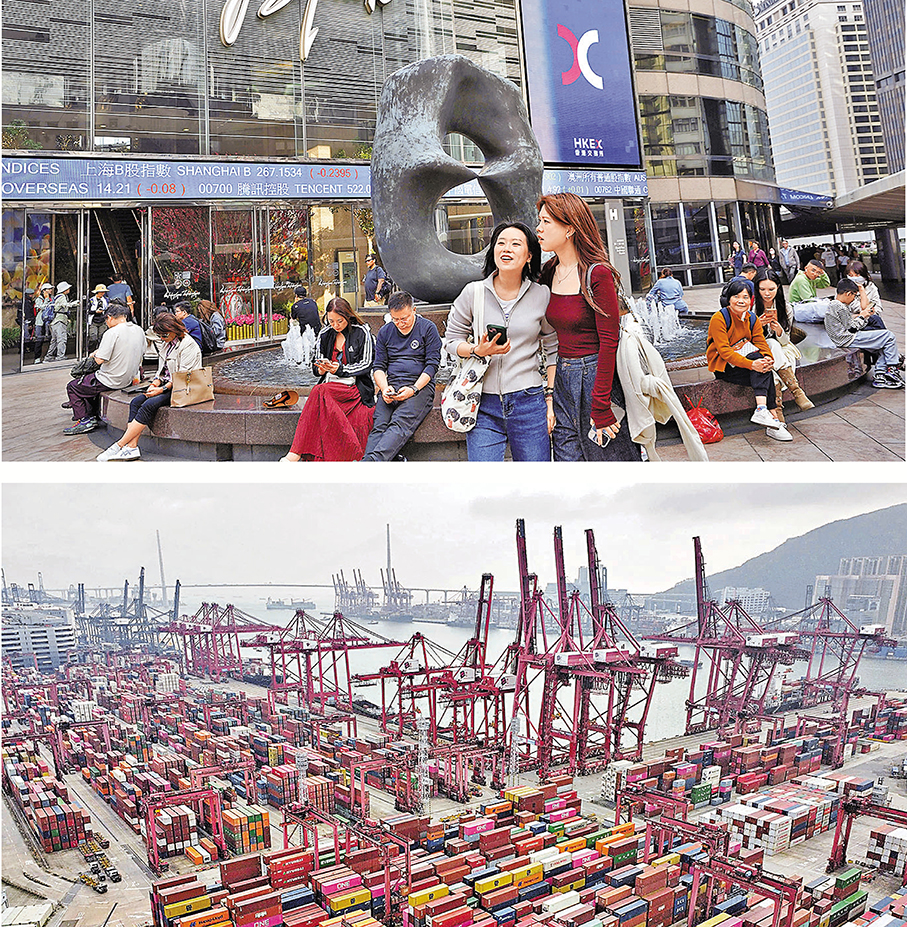 ●香港五年規劃專題諮詢包括金融、貿易等六個範疇。上圖為香港金融中心中環。下圖為葵涌貨櫃碼頭。 資料圖片