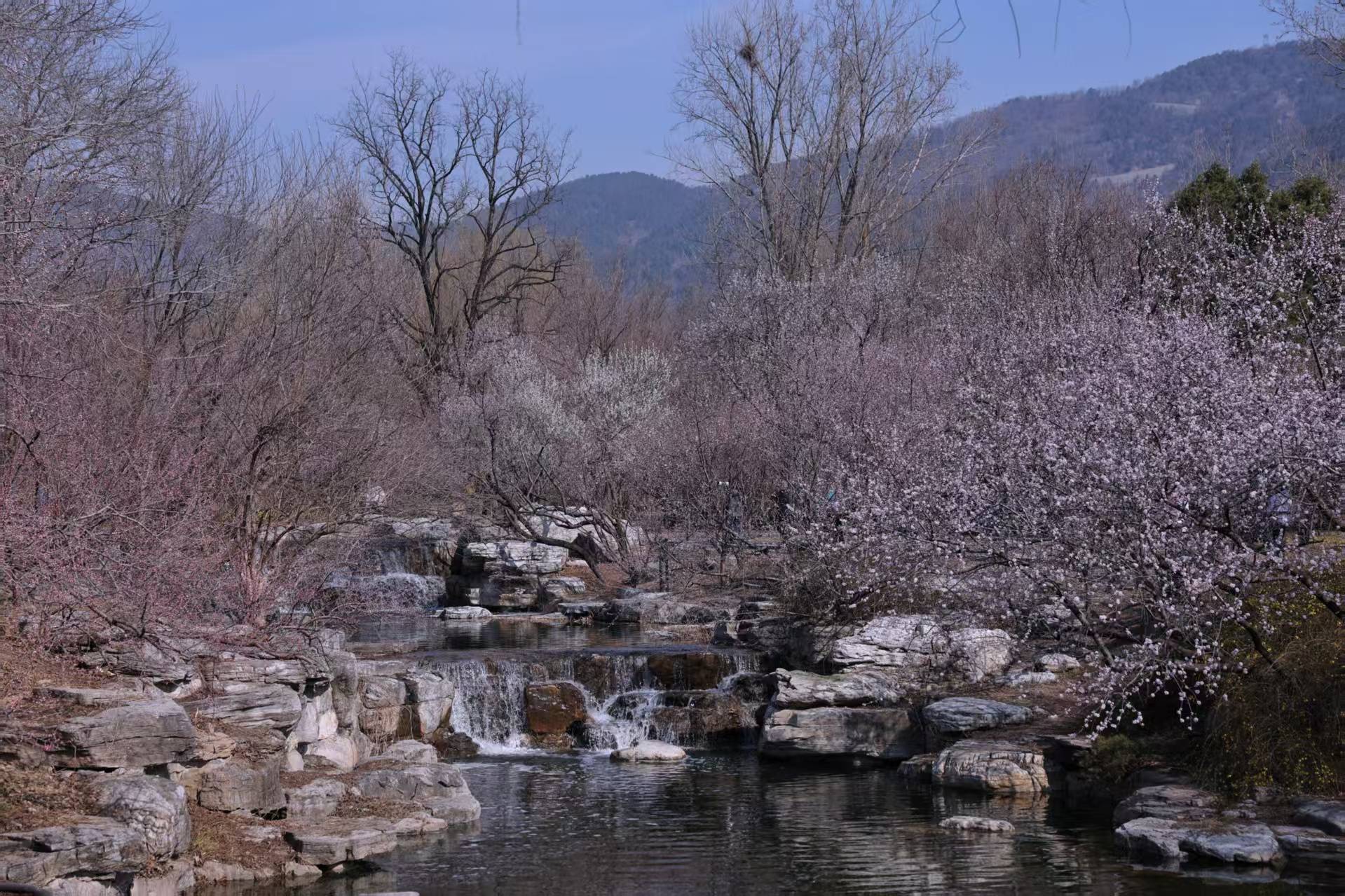 3月20日,国家植物园(北园),山桃花溪进入最佳观赏期,吸引不少游客前来打卡。新京报记者 薛珺 摄