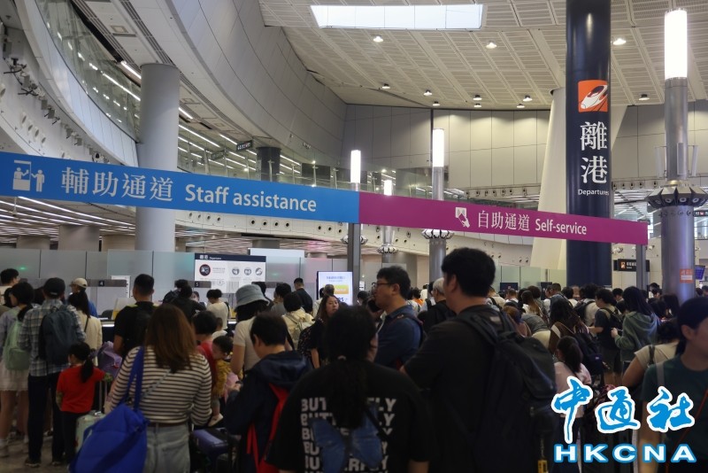 当天下午的西九龙高铁站,大堂挤满等候入闸的乘客,拖著大大小小的行李箱。「今天大部份开往内地的列车车票均已售出,尚未购票的旅客可经罗湖、落马洲口岸前往内地。」车站现场以粤语、普通话及英语三语反复广播,并提醒旅客预留充足时间入闸。