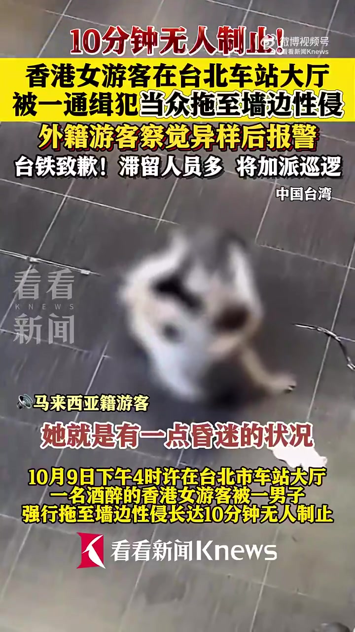 女子在台北车站大厅遭性侵,长达10分钟无人制止