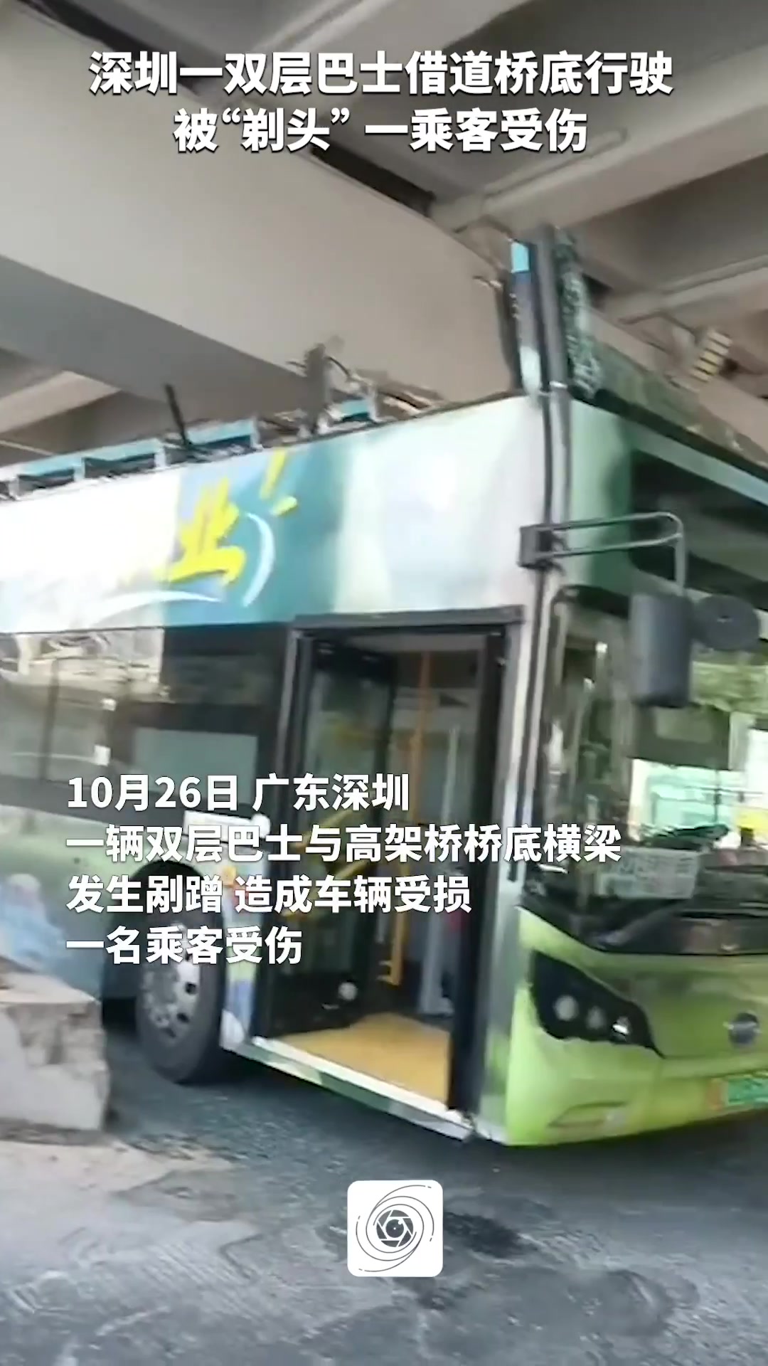 深圳一双层巴士借道桥底行驶被“剃头”,一乘客轻微刮伤