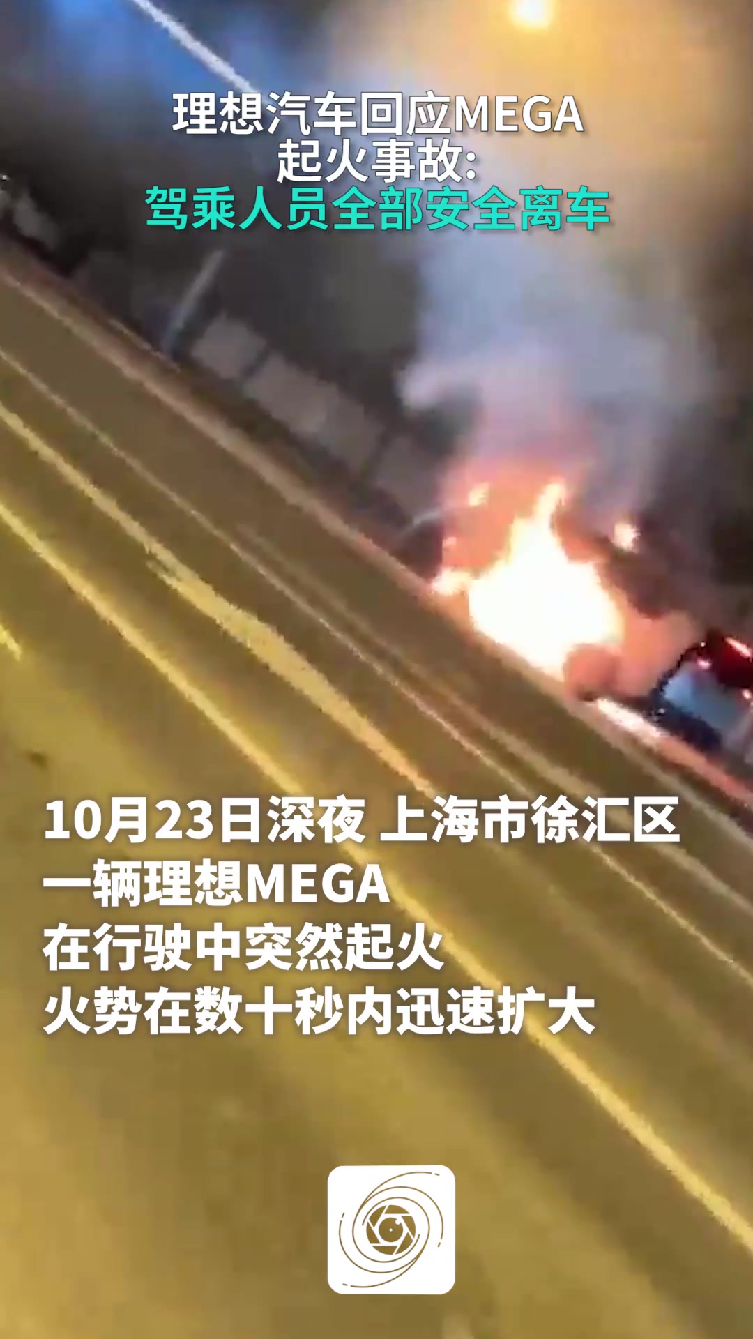 理想回应MEGA行驶中突然起火被烧成空架:车内人员安全离车,会配合调查