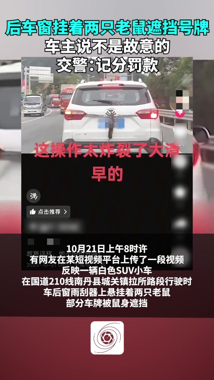 挂着两只老鼠遮挡号牌?广西一司机被罚,挂鼠理由让交警哭笑不得